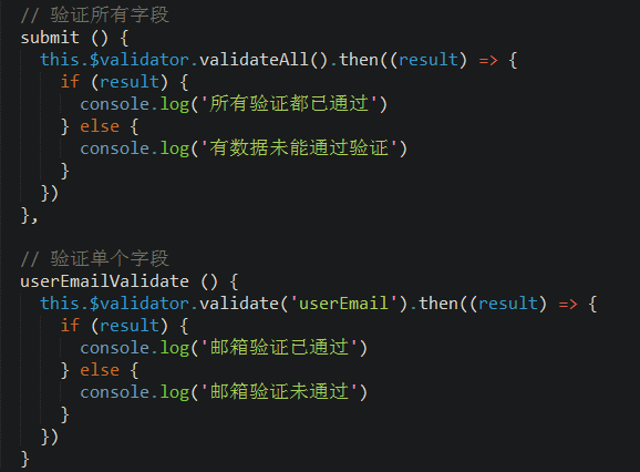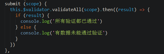 有时候,在同一个组件中可能会有多个表单。你在对数据进行操作时可能只希望验证某个表单中的所有字段。这时您可以通过添加一个data-vv-scope属性告诉验证器来确定验证范围。代码如下(注意高亮部分):
